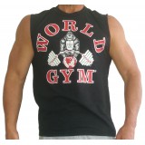 sleeveless muscle shirt with the World Gym gorilla logo. Most colors