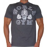 A bodybuilding shirt with the new circle heritage logo. This World Gym